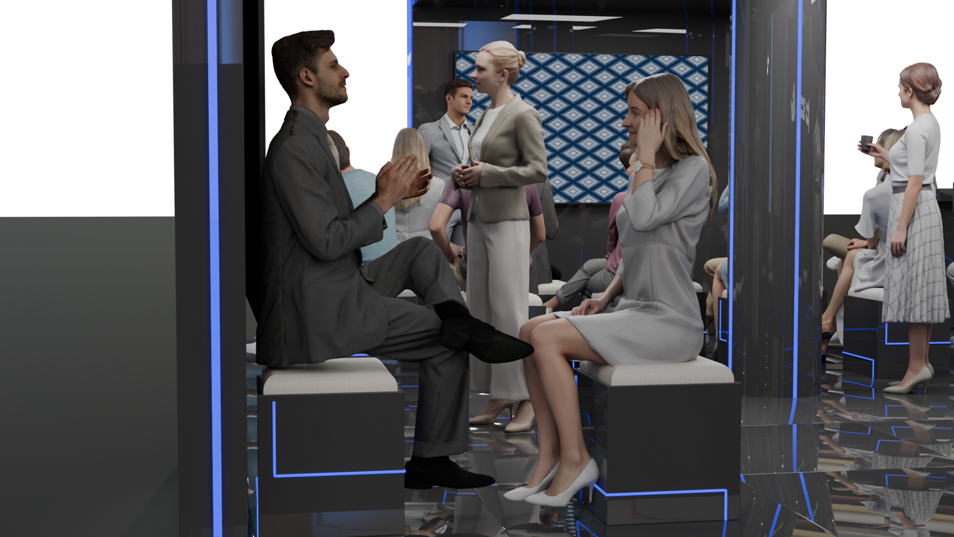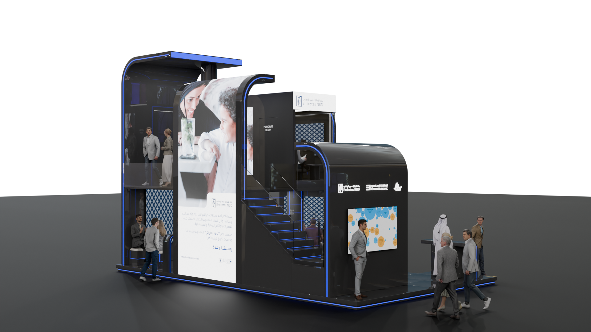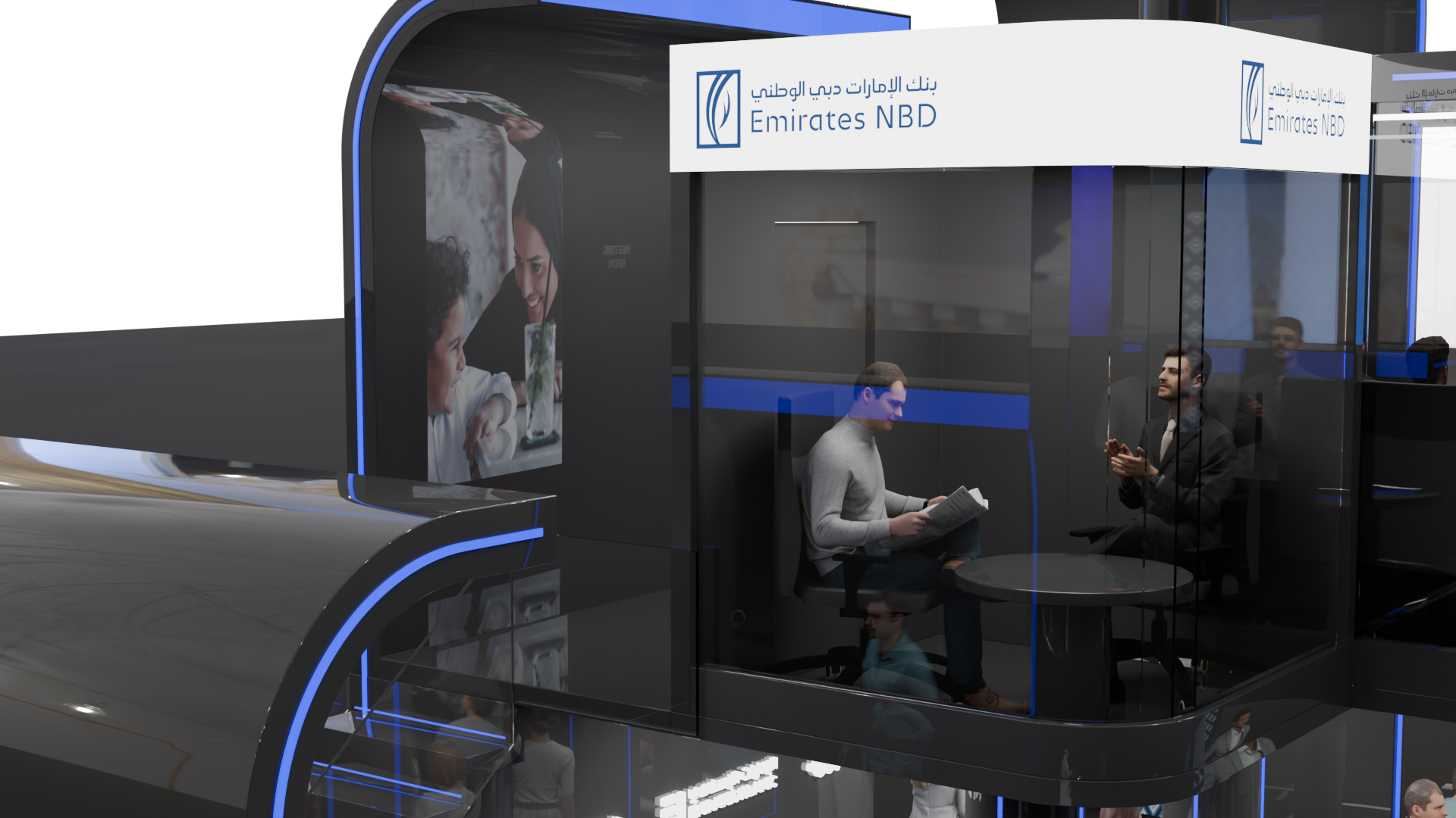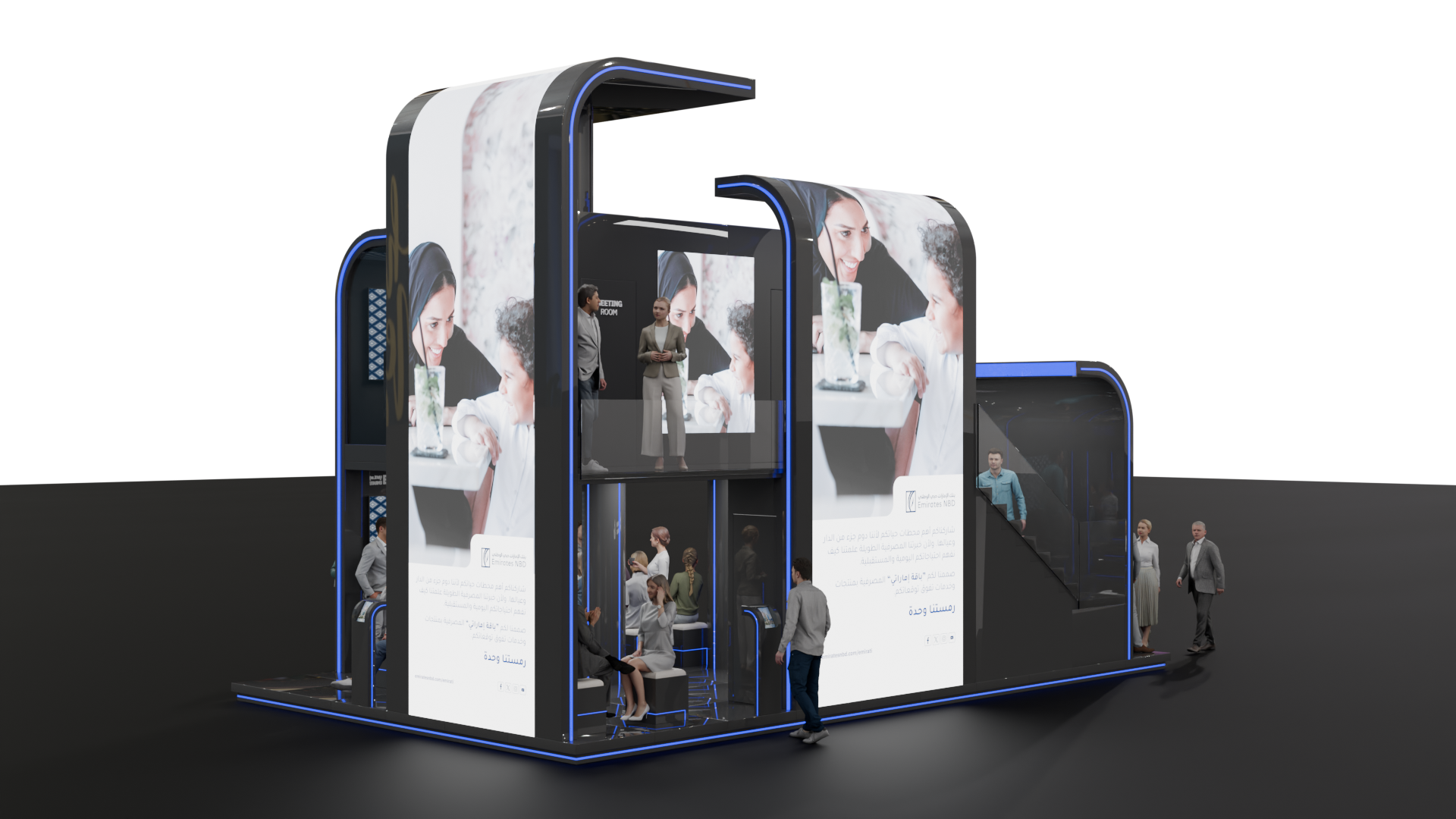 A 15×10 meter stand created for the Emirates NBD group (ENBD, Emirates Islamic, and LIV) designed with a dynamic LED and screen-driven system that transforms the space every 30 seconds, seamlessly rebranding the environment to reflect each entity.